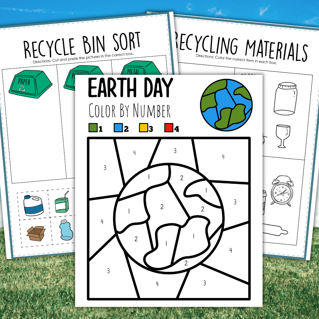 Since color by number pages are such a big hit, I’ve created printable color by number pages for Earth Day too. In these activity pages, your homeschoolers can color all kinds of Earth Day icons like the recycling symbol, the light bulb, Earth, and more!