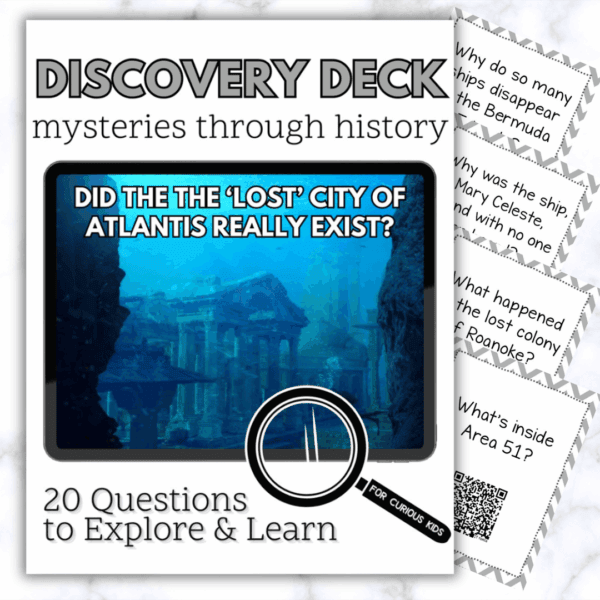 Our Mysteries Through History Discovery Deck invites your child to become a detective as they travel through some of the greatest mysteries of all time. From the disappearance of lost civilizations to unexplained inventions and historical legends, this deck explores some of the most fascinating unsolved mysteries from the past. Each card encourages curiosity and critical thinking as kids learn about history’s biggest question marks.
